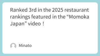 Momoka Japan's 2025 Restaurant Ranking (English Version) Ranked 2nd in the 2025 restaurant rankings featured in the “Momoka Japan” video!